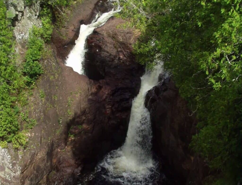 بنابر گزارش وزارت منابع طبیعی مینه سوتا، آبشار شیطان در یک رزیته ریولیت در سنگهای آتشفشانی که به سختی گرانیت هستند، به دو بخش تقسیم میشود. قسمت سمت راست آبشار با ارتفاعی حدود 25 متر به دریاچه پایین آن میریزد. اما اگر سنگی را در قسمت سمت چپ بیندازید، آن را در آبگیر پایین نمیبینید.